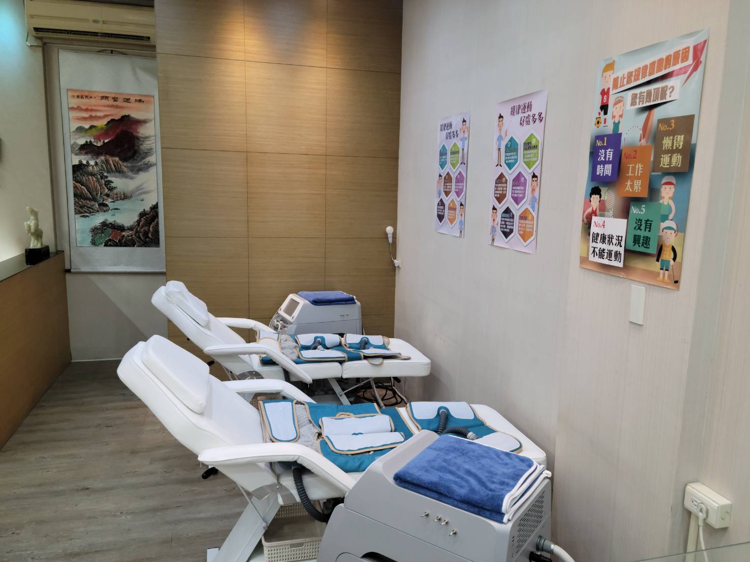 「AI健體知心儀」為全國首創的輔助循環氣壓式按摩設備,透過下肢包覆囊套,由小腿、大腿、臀部依序三段充氣、 同步放氣,藉以輔助身體達到類運動循環效果,長期規律使用有助於活絡循環、寧神安眠、促進代謝、健體強身,真正從內而外幫助身體做全方位的保養。
